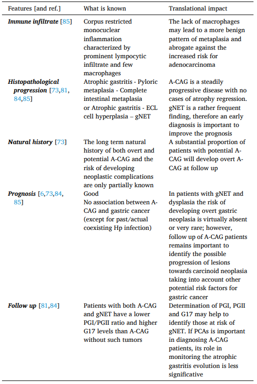 Miceli 연구진은 A-CAG가 시간이 지나도 회복되지 않는 진행성 질환임을 강조하며, 고위험군 환자에 대한 혈청학적 검사가 필요하다고 제안하였다. 20년 이상의 장기적인 관찰이 필요할 수도 있으며, 위암의 기타 위험 요인을 고려하여 맞춤형 추적 관찰 계획이 필요함을 시사하였다 (Table 1).