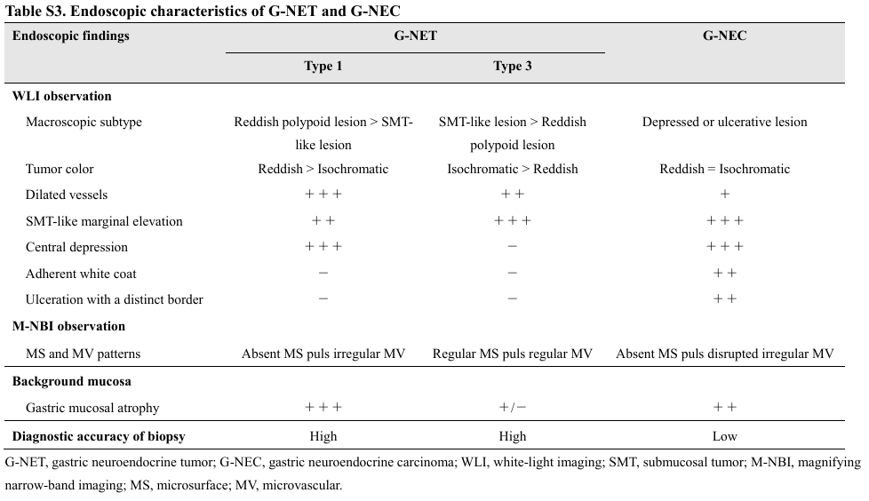 결론적으로, 본 종설에서는 G-NET과 G-NEC의 임상병리학적 특징과 관련된 대표적인 내시경 소견을 정리하였다(Table S3).